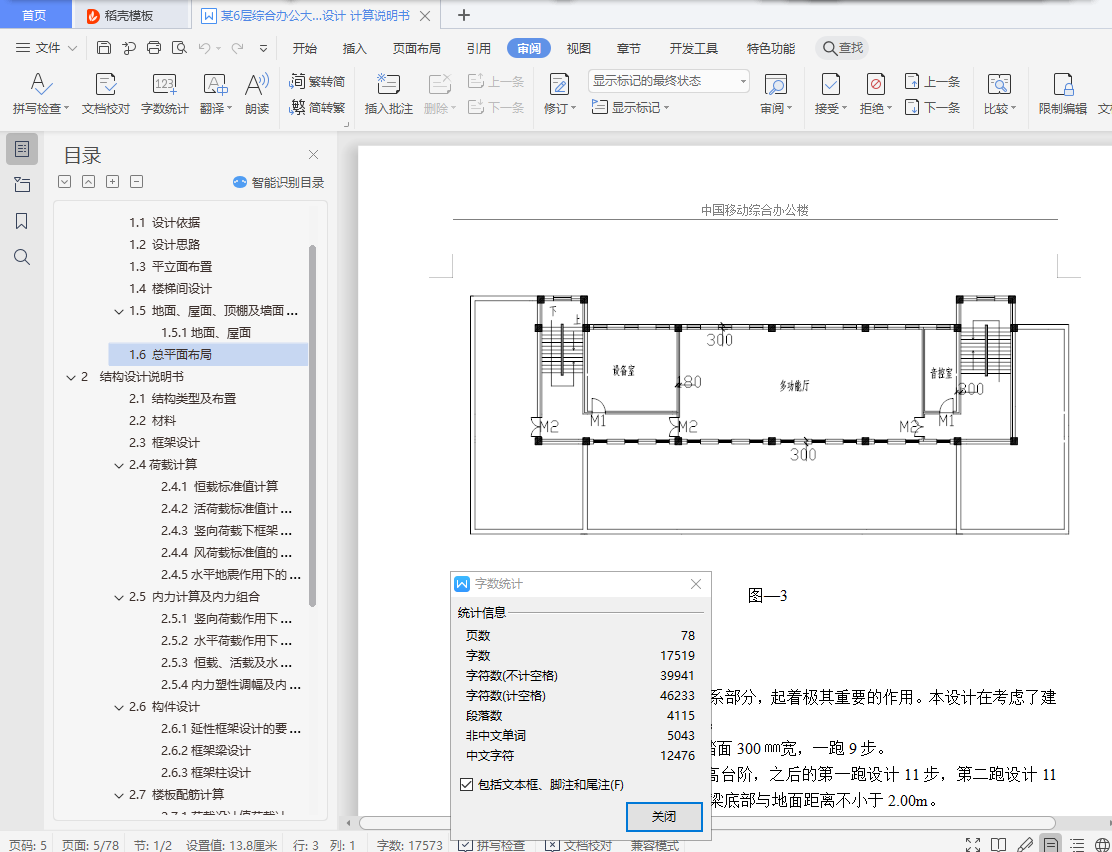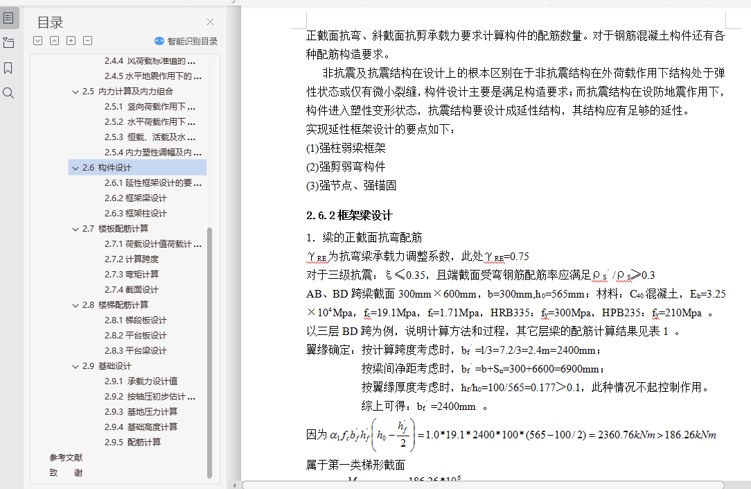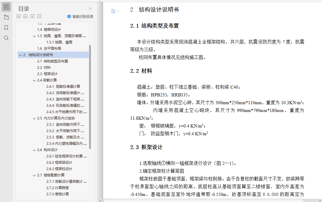 设计内容包括建筑设计,结构设计,施工图绘制以及外文参考文献翻译等四个主要部分。结构计算部分选取一榀框架进行手算,包括荷载、内力和配筋计算。对整个结构则采用PKPM软件进行配筋计算。设计全部按国家标准,符合经济、实用、美观、安全的原则。