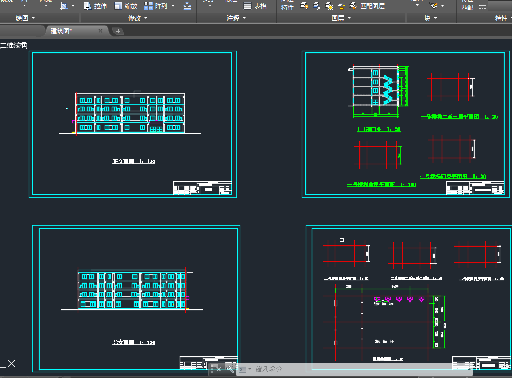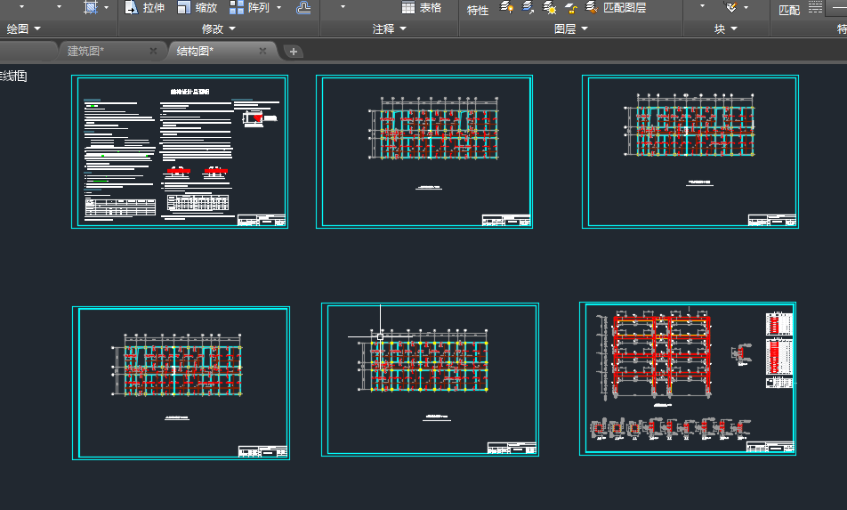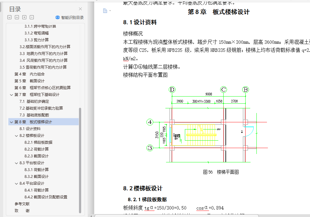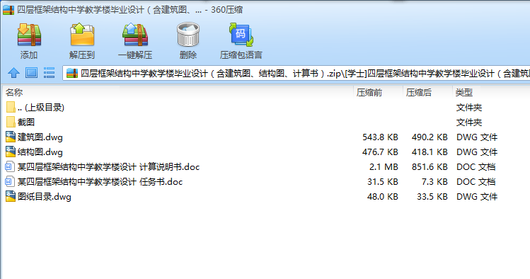 本设计主要进行了结构方案中横向框架2、3、7、8轴框架的抗震设计。在确定框架布局之后,先进行了层间荷载代表值的计算,接着利用顶点位移法求出自振周期,进而按底部剪力法计算水平地震荷载作用下大小,进而求出在水平荷载作用下的结构内力(弯矩、剪力、轴力)。接着计算竖向荷载(恒载及活荷载)作用下的结构内力,找出最不利的一组或几组内力组合。 选取最安全的结果计算配筋并绘图。此外还进行了结构方案中的室内楼梯的设计。完成了平台板,梯段板,平台梁等构件的内力和配筋计算及施工图绘制。