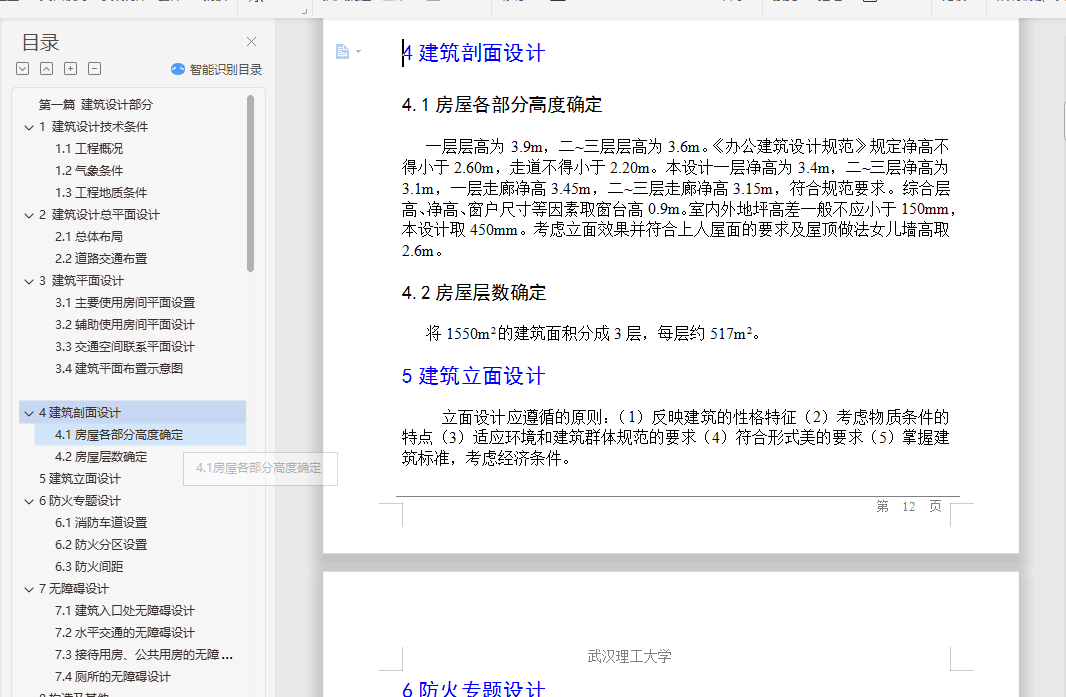 本设计的项目为武汉市海伦机械厂办公楼,建筑面积为1550.70m2。