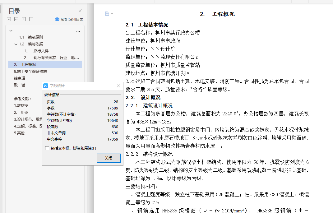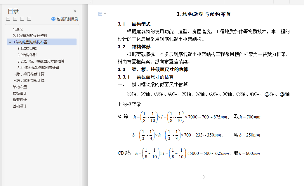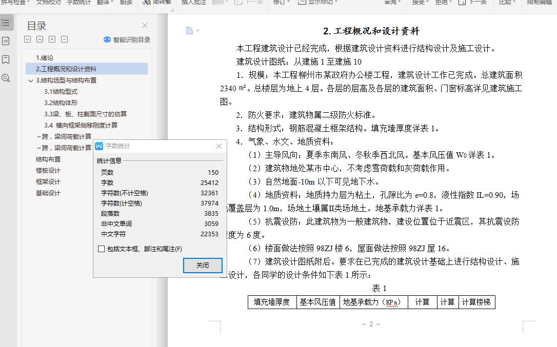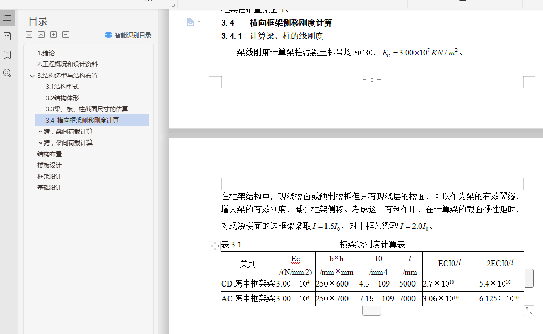 目录1.绪论 - 1 -2.工程概况和设计资料 - 2 -3.结构选型与结构布置 - 3 -3.1 结构型式 - 3 -3.2 结构体形 - 3 -3.3 梁、板、柱截面尺寸的估算 - 3 -3.4 横向框架侧移刚度计算 - 5 -~跨,梁间荷载计算 - 9 -~跨,梁间荷载计算 - 9 -结构布置 - 148 -楼板设计 - 148 -框架设计 - 148 -基础设计 - 149 -1.绪论本设计是按照广西工学院鹿山学院土木建筑工程系土木工程专业毕业设计要求编写的毕业设计。设计题目为:柳州市某行政办公楼结构设计。办公楼是公共建筑,其规范要求比较严格,能体现出结构设计很多重要的方面。选择办公楼设计,即要注意先进性,又要从广西的实际情况出发,在满足使用要求的前提下,综合考虑安全可靠、经济合理、施工方便等因素,从而掌握办公楼设计的基本原理,妥善解决其功能关系,满足使用要求。在结构布置的过程中,结构布置要使荷载传递直接、受力明确,并按强度和刚度要求初步确定构件的截面尺寸,构件类型和尺寸规格尽可能少,在结构布置的基础上深入考虑在竖向荷载和水平荷载作用下,结构体系之间协同工作的程度,合理地确定结构或构件的计算简图。还需考虑整个建筑物在平面和竖向上是否需要采用构造措施,以保证整个建筑物及其某些薄弱部位在平面和竖向上的刚度及整体性。在结构布置的基础上,深入考虑在竖向荷载和水平荷载的作用下,结构体系之间协同工作的程度,通过必要的计算和结构处理,使结构构件及其连接的节点满足强度、刚度和裂缝宽(或抗裂度)的要求,并符合现行设计规范、满足国家强制性条文,最终把结构布置和构件设计准确地反映到施工图中。这次设计是在各位老师的悉心指导下完成的,在此向各位老师表示衷心的感谢!鉴于学生水平有限,设计中还存在不少的缺点甚至错漏,敬请老师批评和指正。