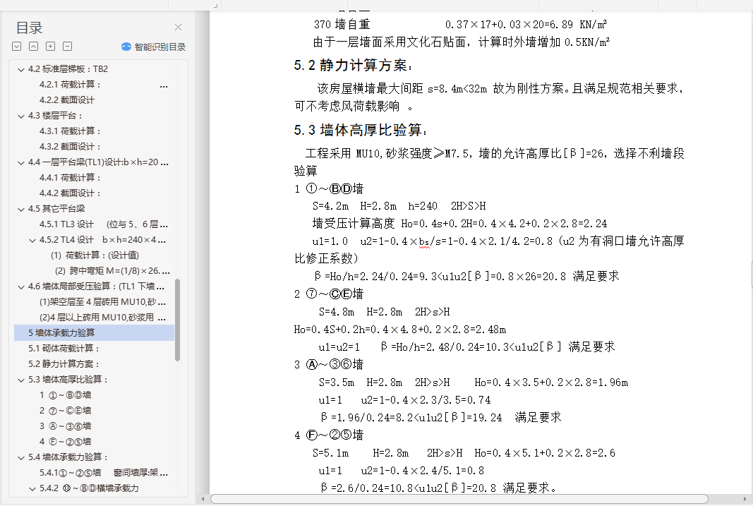5墙体承载力验算 ……………………………………………………………………………21