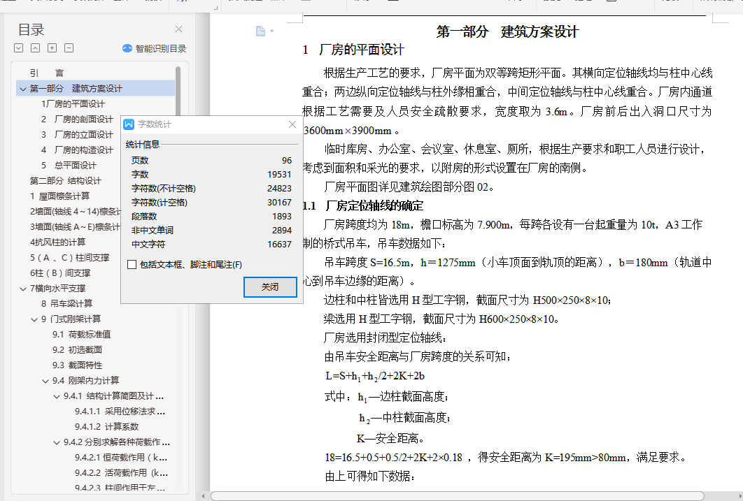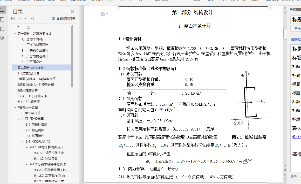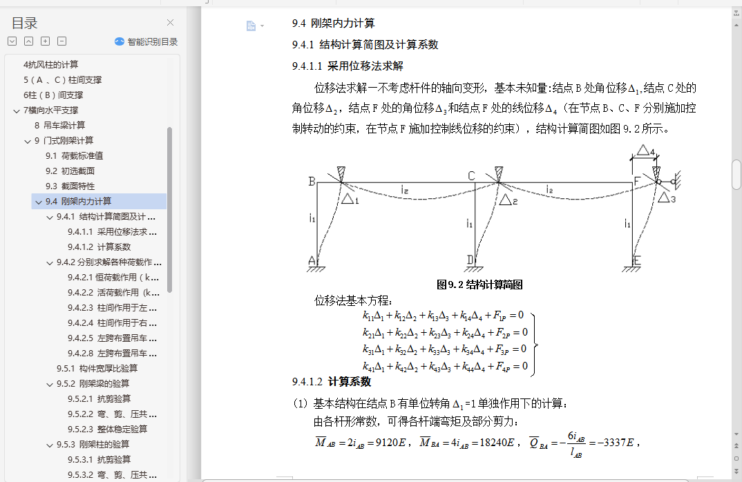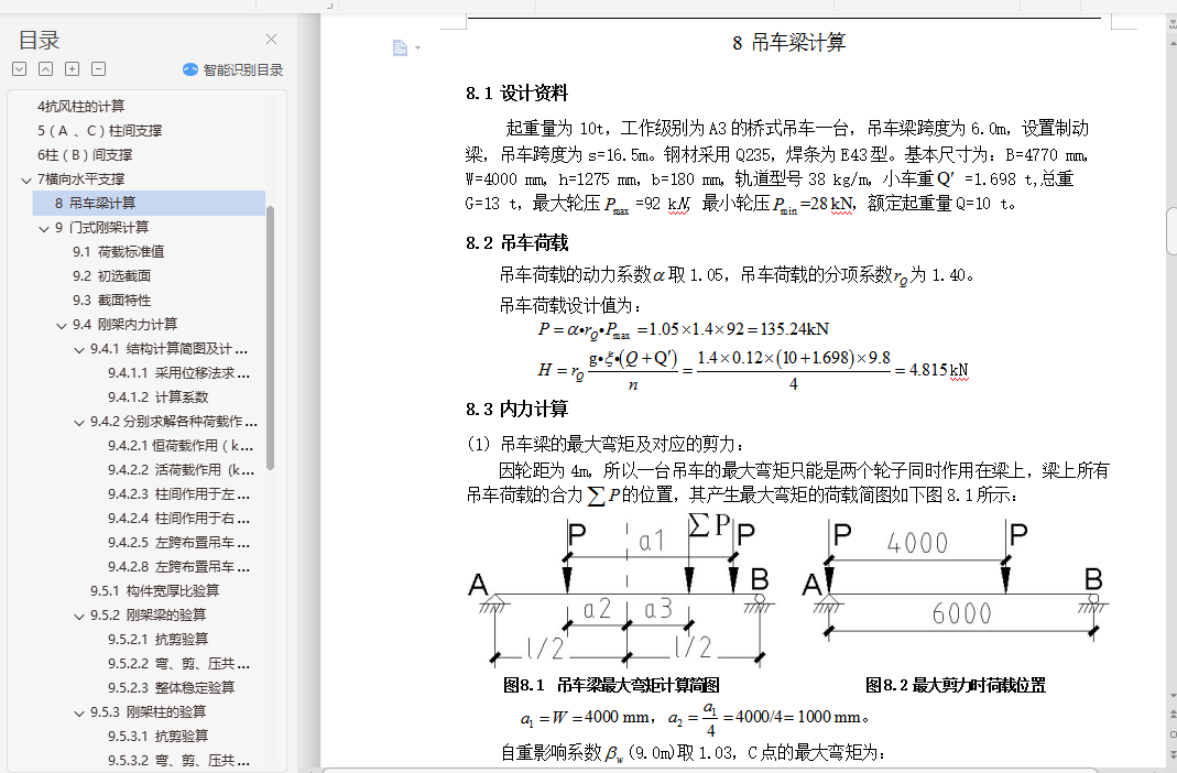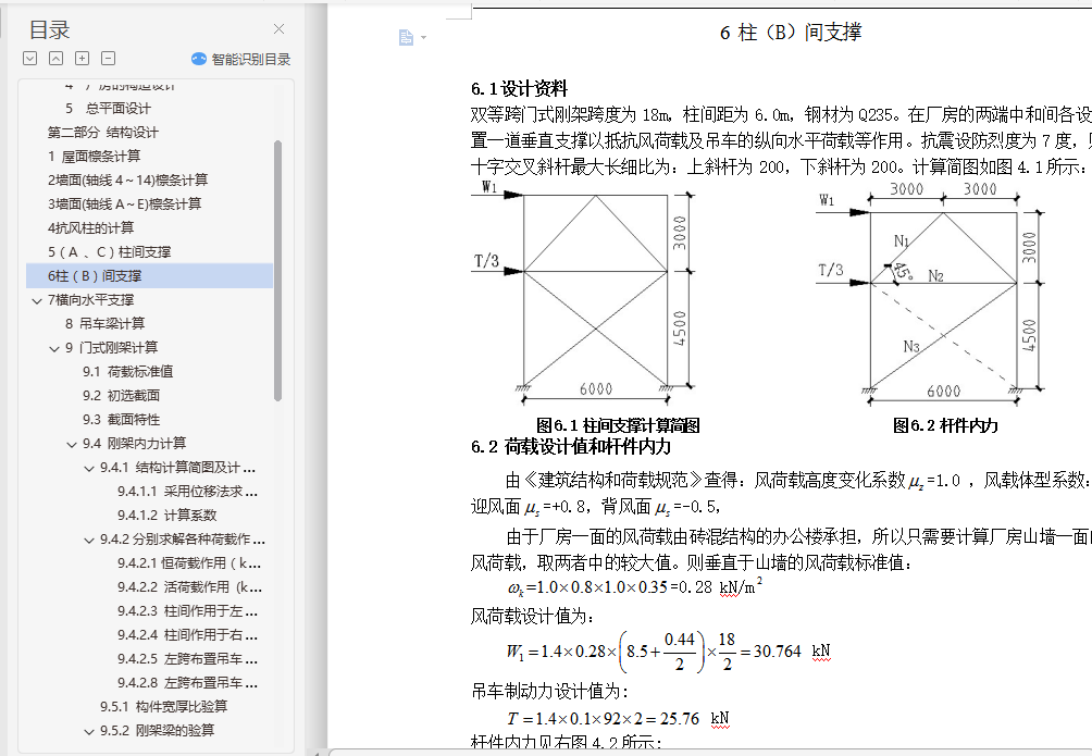 本设计是单层双跨轻钢结构工业厂房,采用门式刚架结构:每跨18米,每跨中都设有一台10吨、A3级桥式吊车。设计主要依据《钢结构设计规范》(GB50017―2003)和《门式刚架轻型房屋钢结构技术规程》(CECS102:2002)等国家规范。确定刚架平面布置后,先进行各种的荷载标准值计算,利用PKPM软件估算选梁、柱截面进行内力分析及组合,忽略地震荷载等因素的影响。在此基础上确定梁、柱的截面,并且利用位移法求出在荷载组合作用下的结构内力(弯矩、剪力、轴力),验算了其平面内外的稳定性。梁柱均采用Q235钢,8.8级和10.9级摩擦型高强螺栓连接,局部焊接采用E43型焊条。在计算内力组合中,只选用了一种最不利的组合,最安全的结果计算。此外还进行了地基基础的计算,由于厂房处的地质条件较好,故采用了安全的柱下独立基础的设计方案。完成了梁、柱和房屋墙面檩条等构件的内力和截面的计算,及绘制了建筑和结构施工图纸。
