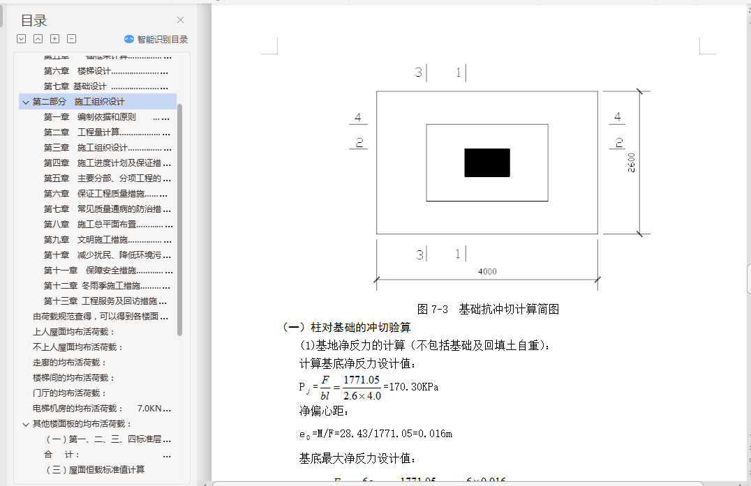 4)地质资料:地质持力层为粘土,孔隙比为e=0.8,液性指数I1=0.90,场地覆盖层为1.0M,场地土壤属Ⅱ类场地土。地基承载力详表一。