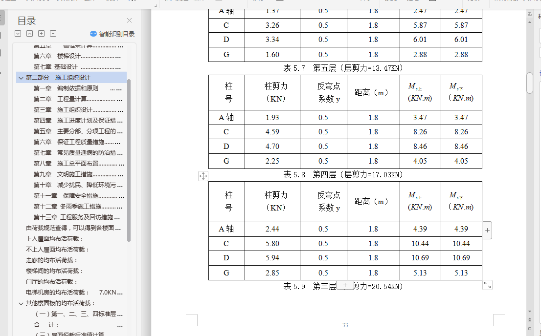 第六节 重力荷载作用下框架KJ-1的内力计算 ………………………53