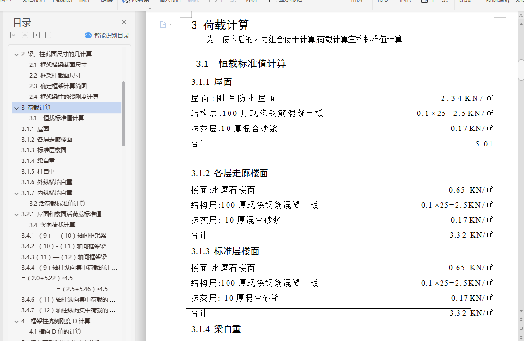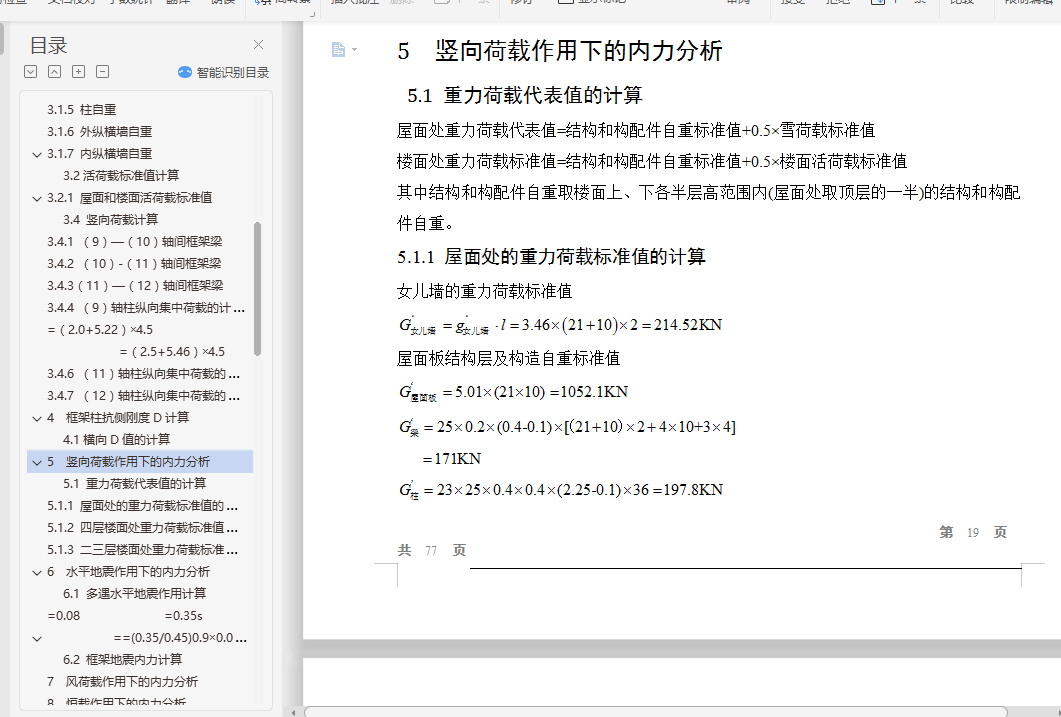 5.1.1 屋面处的重力荷载标准值的计算 19