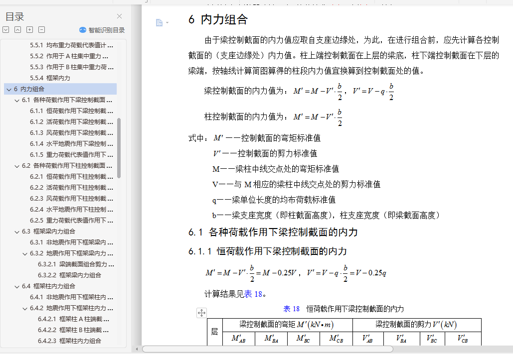 6.1.5 重力荷载代表值作用下梁控制截面的内力 36