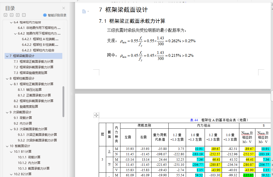 6.4.2 地震作用下框架柱内力组合 41