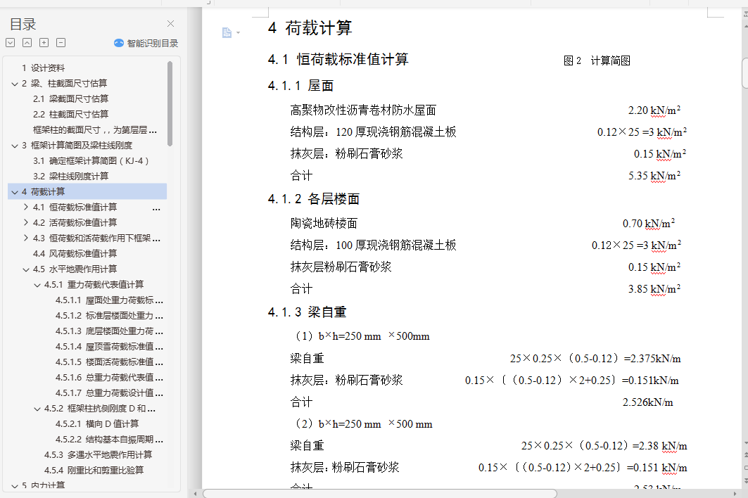 4.1 恒荷载标准值计算 图2 计算简图 6