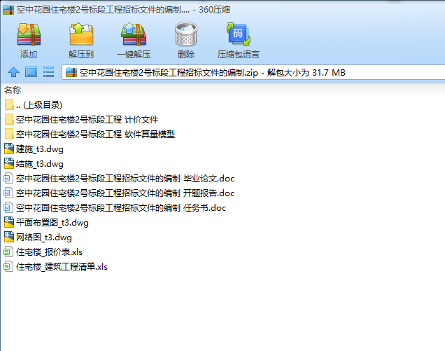 本设计是编制XX市空中花园住宅楼2号标段施工标段招标文件,该工程采用砖混结构形式,工程总建筑面积1958.54平方米,为地面七层建筑,建筑总高度为21.90m;建筑耐火等级为二级,建筑结构安全等级为二级,地基基础设计等级为丙级,结构设计使用年限为50年,抗震设防烈度7度;招标的范围为土建工程、安装工程和装饰装修工程。设计以国家工商行政管理局和建设部颁发的《建设工程合同示范文本》(GF-99-0201)、《2009云南省建设工程工程量清单计价规则》、《建设工程招投标法》、相应施工图纸为编制依据,采用工程量清单计价方法,选用经评审的最低投标价法评标定标,结合本工程实际情况编制招标文件。