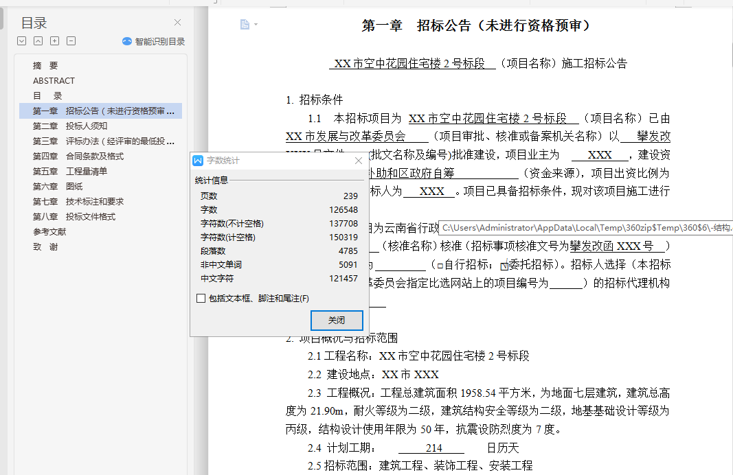 关键字:工程招标、招标文件、工程概括、编制依据