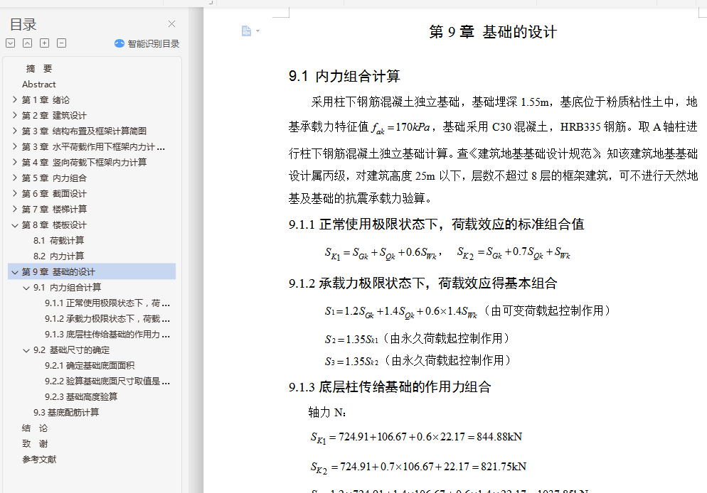 9.2.2验算基础底面尺寸取值是否合适(用标准组合) 66