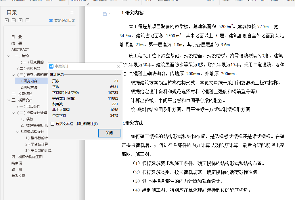 Design content is a teaching building floor stair structure design,the total building area of 5200 m2.. The length of the building is 77.7 m,the width is 34.5 m,and the building covers an area of 1500 m2,of which 5 floors above the ground are above the ground,and the building height is 21 m. from the outdoor floor to the top of the parapet. The first layer is 4.8 m,the remaining layers are 3.6 m. high The project adopts independent foundation under column,cast-in-place floor,cast-in-place staircase. The seismic fortification intensity is 7 degrees. The construction durability is 50 years. The waterproof grade of building roof is grade I,and the durability is 15 years. Aerated walls Concrete block masonry,inner wall 200 mm,outer wall 200 mm. thick