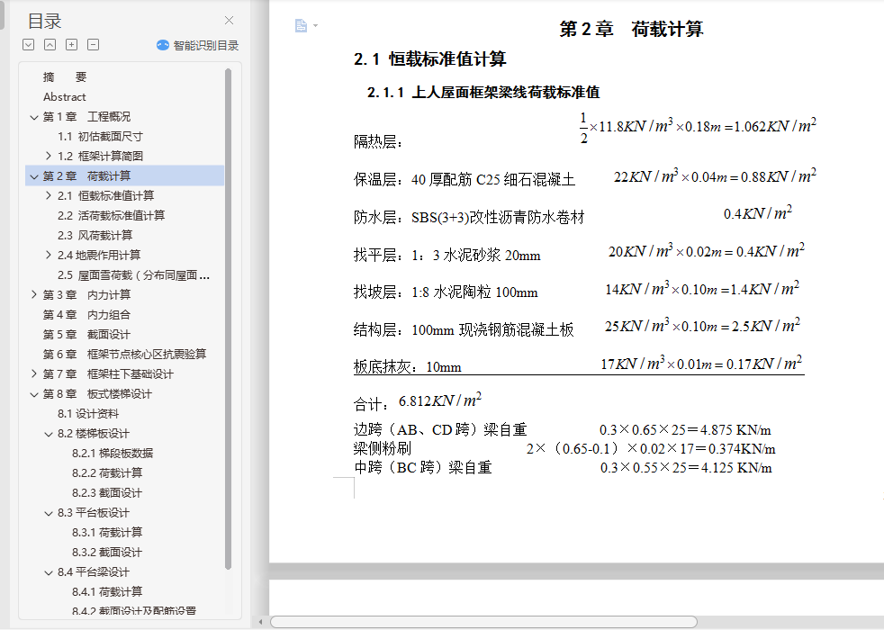 2.1.1 上人屋面框架梁线荷载标准值 3