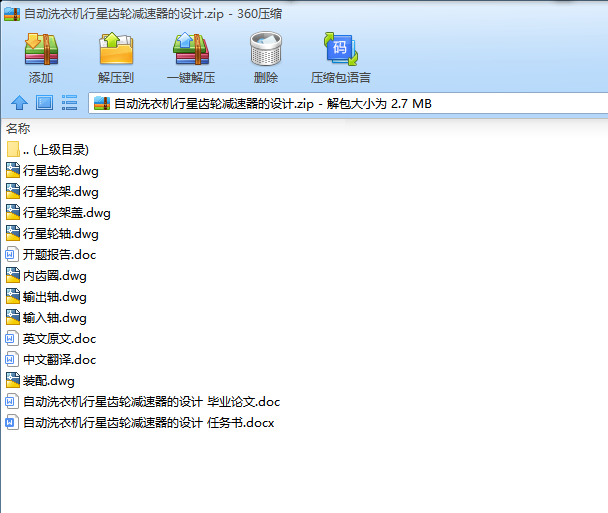 关键词:洗衣机;行星齿轮;减速器;回转系统;CAD