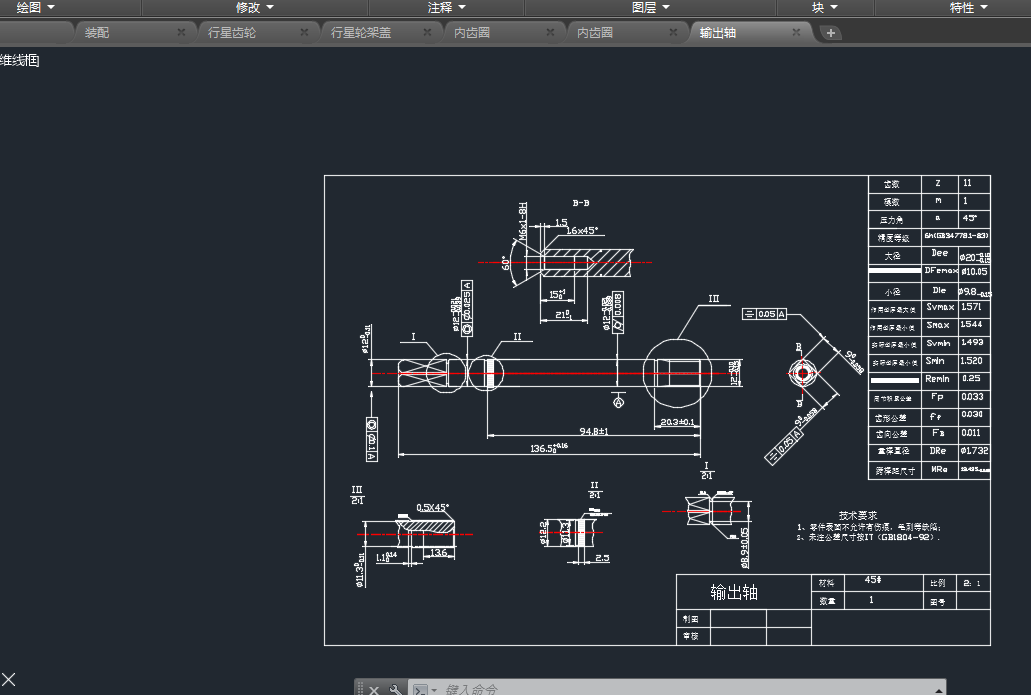 5行星轮系减速器齿轮输入输出轴设计 22