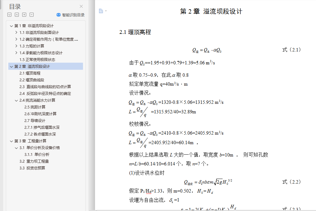 非溢流坝段的基本断面呈三角形,其顶点宜在坝顶附近。基本断面上部设坝顶结构。根据交通和运行管理的需要,坝顶应有足够的宽度。为防波浪漫过坝顶,在静水位以上还应留有一定的超高。