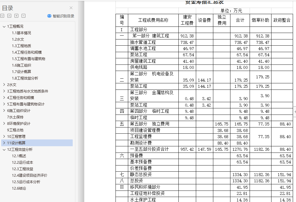 11.7 工程概算表 82