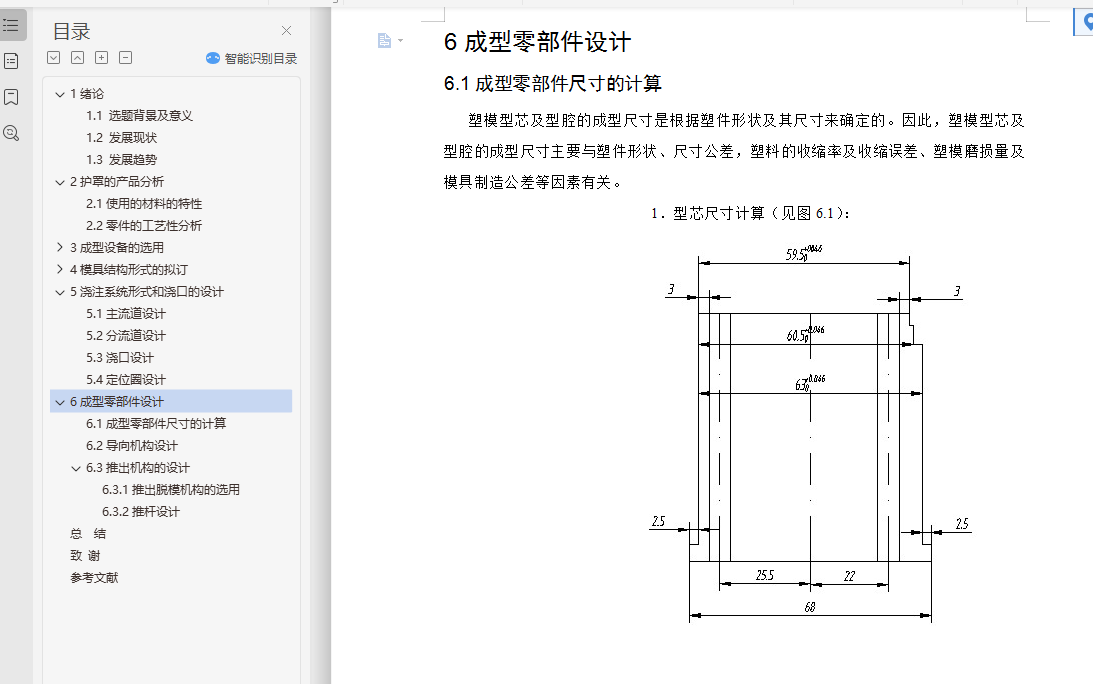 通过本次护罩设计,可以对注塑模具有一个初步的认识,注意到设计中的某些细节问题,了解模具结构及工作原理;通过对CREO的学习,可以建立较简单零件的零件库,从而有效的提高工作效率。