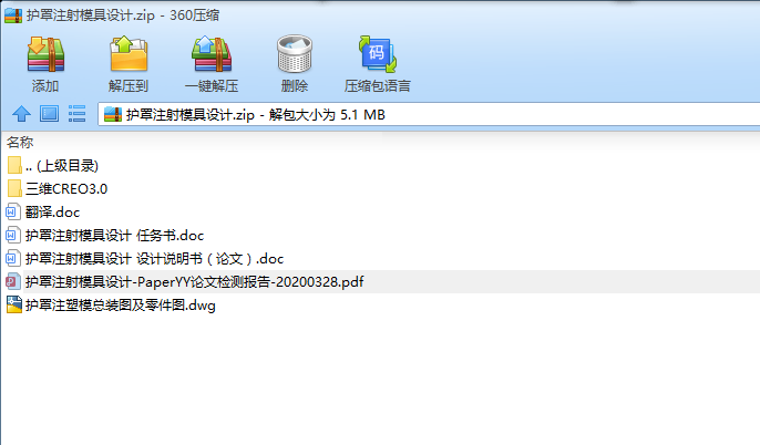 Through this shield design,we can have a preliminary understanding of the injection mold,notice some details in the design,and understand the mold structure and working principle. Through the study of CREO,a part library of simpler parts can be established,thus effectively improving the work efficiency.