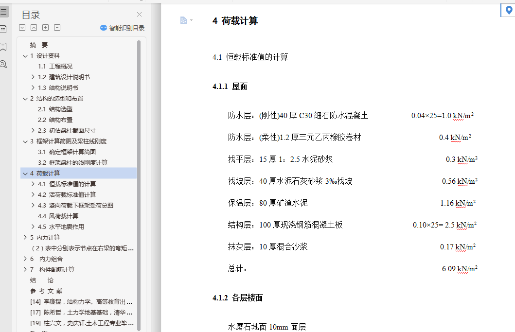 4.1 恒载标准值的计算 12