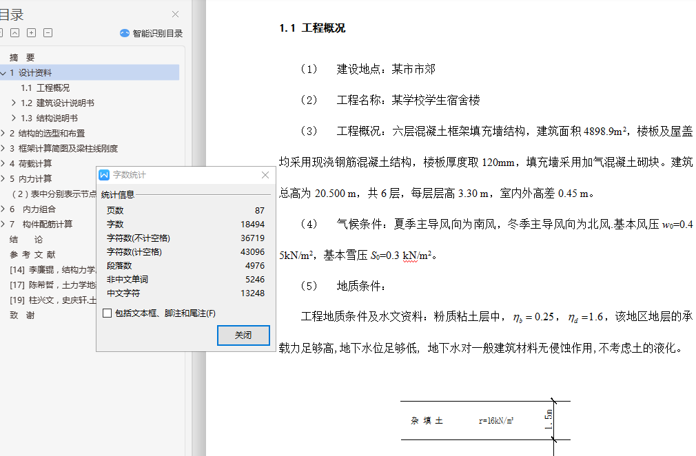 The project for the frame structure, main body of six layers the region seismic fortification intensity is 6 degrees, the second group, site category III class site. Dominant wind direction for the southwest the basic wind pressure of 0.45 KN/m, basic snow pressure of 0.3 KN/m2. Floor, roof adopts the cast-in-place reinforced concrete structure.