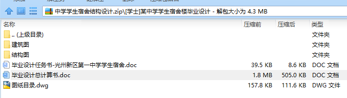 [Abstract] This is a student's dormitory of a middle school in the Guangzhou newly developed area. Its function is provides the residence for the school student. It is a multi-layer reinforced concrete frame. It has five stories, the height of the first storey is 3.3 meters, and the height of other stories are all 3.3 meters. The height of the whole building is 18.5 meters. The total floor space is 4022.15 square meters. One room can live four students, has the independence the bathroom and the balcony. Altogether can live 440 people.