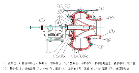 TLR型脱硫烃碱循环泵为单级单吸卧式离心泵型式,结构见图1: