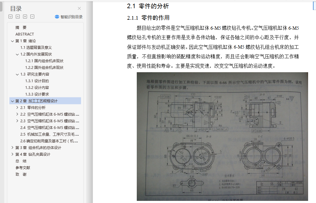 关键词:空气压缩机缸体;6-M5螺纹钻孔;工艺;夹具;组合机床