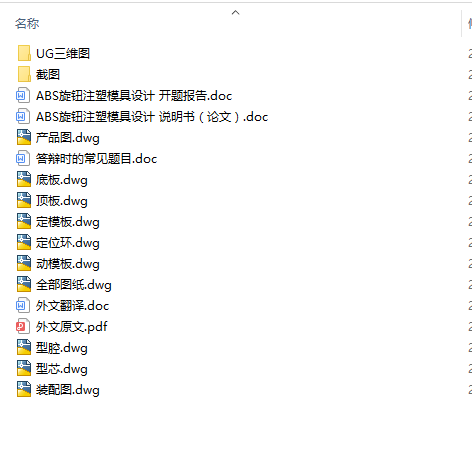 ABS旋钮注塑模具设计说明书(论文)+开题报告+外文翻译及原文+CAD图纸+UG三维图+答辩常见问题
