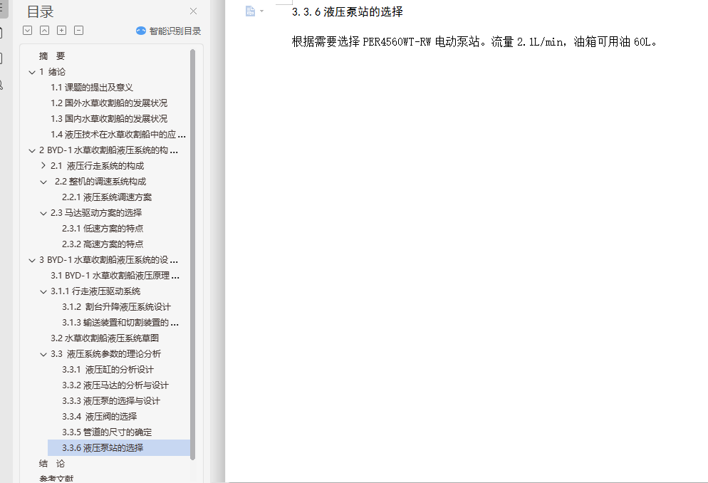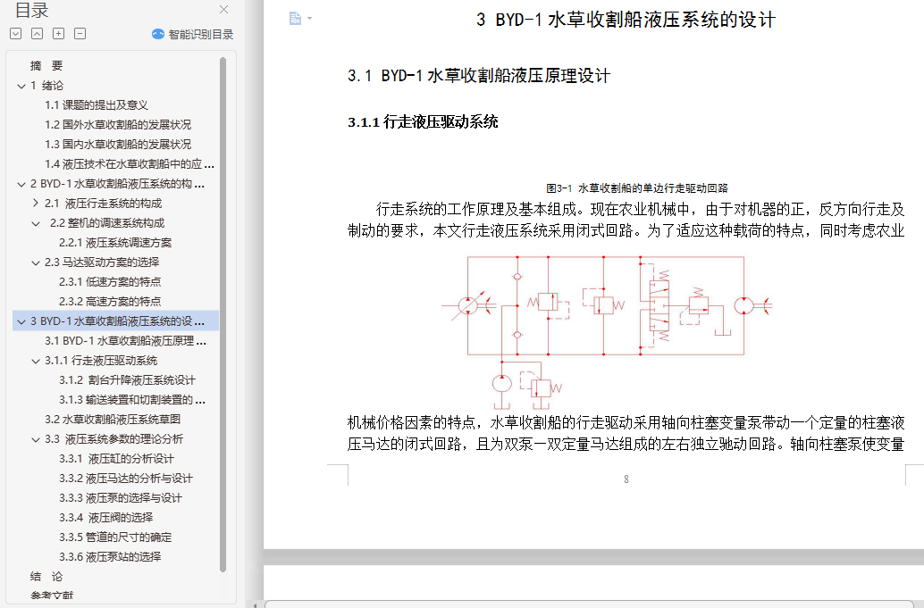 水草收割船液压系统设计说明书(论文)+开题报告+cad图纸+答辩PPT