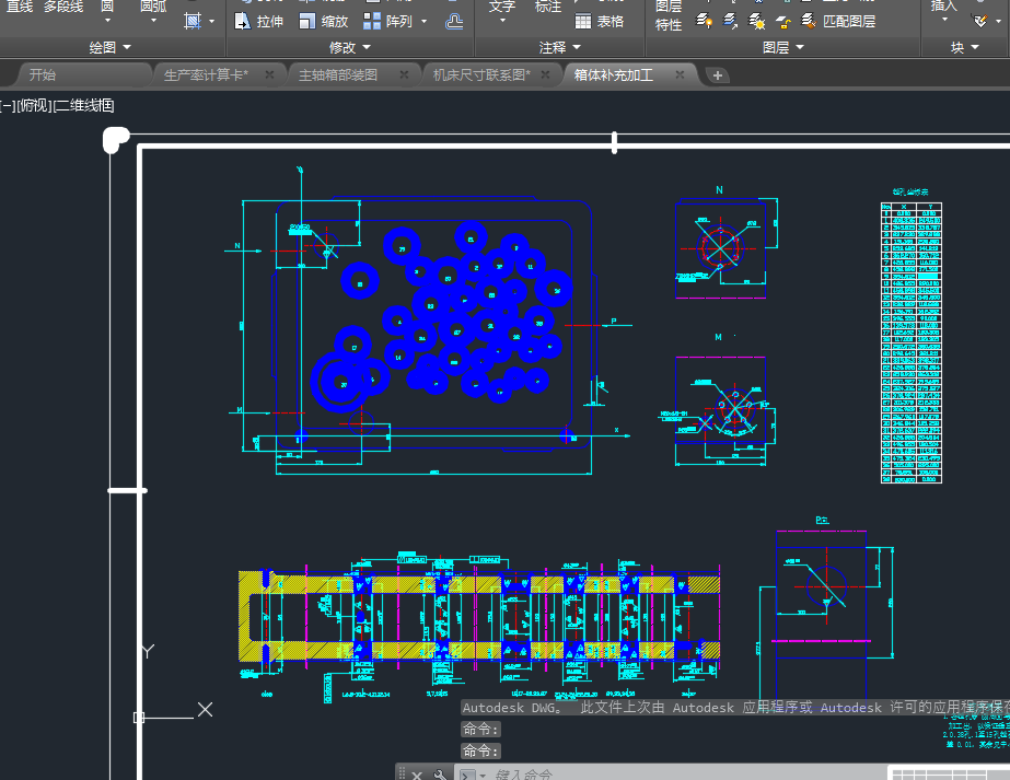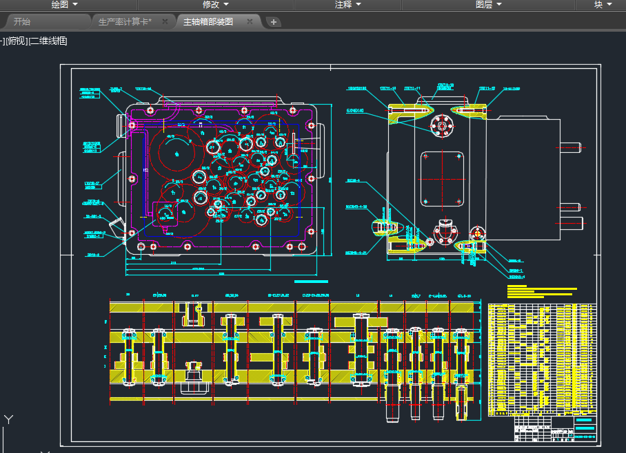 摘 要本组合机床是针对ZH1105柴油机汽缸体三面攻螺纹组合机床而设计的。在设计中,借鉴了国内外一些现有组合机床资料,结合被加工零件的结构特征,在江淮动力集团现有机床的基础上改进而成的。因为工艺方案在很大程度上决定组合机床的结构配置和实用性能。因此应根据被加工工件的特点,按组合机床常用的设计方法、充分考虑各种影响因素,并分析后拟订出可靠的工艺方案。在主轴箱设计方面,原有机床采用的是单孔攻丝,加工效率低,孔的加工尺寸不容易保证,且位置精度不高。改进后,将单孔加工改为一次加工,不仅提高了加工效率,而且保证了孔的加工精度问题。关键词: 组合机床 工艺方案 加工精度AbstractThe main introduction ZH1105 diesel engine air cylinder three offend the design of the thread combination machine bed, stud. Have refered to some domestic and international existing information of modular machine tool in this designing , combination had been processed the structural feature of element in JiangHuai power inc. Existing machine tool , because of the technology scheme decide practicality and the structural disposition of modular machine tool greatly, so that should according to the characteristic of workpiece, use frequently according to modular machine tool design method , consider various influencing factors fully, after analyse and draw up reliable technology scheme.In the aspect of main shaft case design, original machine tool adopt is single hole tapping, the processing efficiency is low ,and the processing size of hole can not be guaranteed easily, and the processing efficiency of location precision is also low . After improving, the single hole processing will alter for one processing, have not only raised , have also guaranteed the processing precision problem of hole.Key words: Combination machine bed; Technology scheme;Processing precision目 录0.前言………………………………………………………………………………11. 整体方案论证 ………………………………………………………………… 41.1 工艺方案拟订 ………………………………………………………………… 41.1.1 卧式组合机床 ……………………………………………………………… 41.1.2 立式组合机床 ……………………………………………………………… 41.2 绘制三图一卡 ……………………………………………………………… 41.2.1 绘制加工工序图 …………………………………………………………… 41.2.2 绘制加工示意图 …………………………………………………………… 51.2.3 绘制机床总图 ……………………………………………………………… 51.3 切削用量的选择 ……………………………………………………………… 52. 主轴箱设计 ……………………………………………………………………112.1 动力箱选择 ……………………………………………………………………112.2 主轴箱传动设计 ………………………………………………………………122.2.1 对主轴箱传动系统的一般要求 ……………………………………………122.2.2 拟订主轴箱传动系统的基本方法 …………………………………………122.2.3 绘制传动树行图 ……………………………………………………………142.2.4 确定各轴位置 ………………………………………………………………142.2.5 主轴箱坐标计算 ……………………………………………………………152.2.6 绘制坐标检查图 ……………………………………………………………173. 轴、齿轮校核 …………………………………………………………………18
