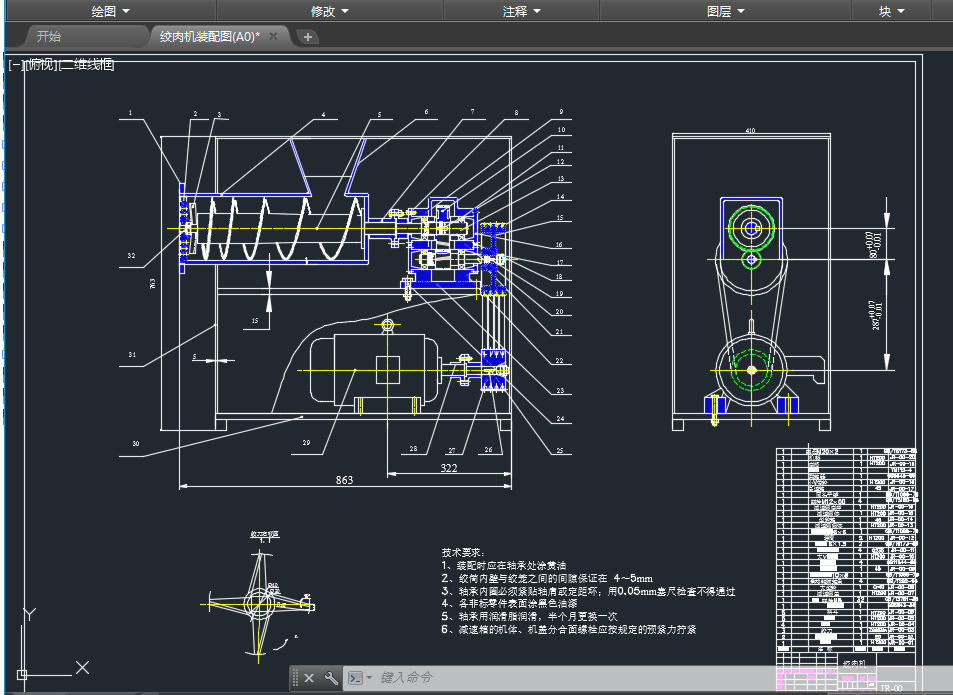 电动绞肉机主要由送料机构、切割机构和驱动机构等组成,如图2-1所示。