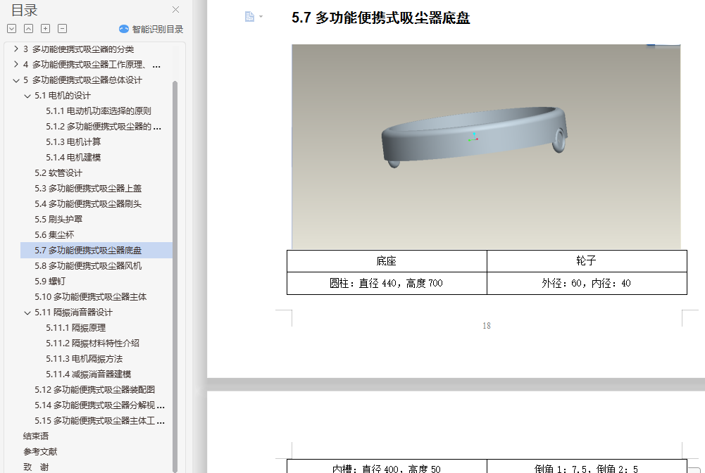 摘 要:本文从多功能便携式吸尘器的历史开始,介绍了多功能便携式吸尘器的发展状况、种类、工作原理、结构和适用环境。然后对多功能便携式吸尘器做简要分析,从外观设计到内部结构的设计,用Pro/E构造出多功能便携式吸尘器的各部分元件的三维图,如软管、风机、轴承、电机、底盘、主体等。最后对设计出来的元件进行装配,构造出装配图和爆炸图,并用CAD画出多功能便携式吸尘器主体结构的二维图。文中还着重介绍了电机选择设计和减震消音器设计部分。
